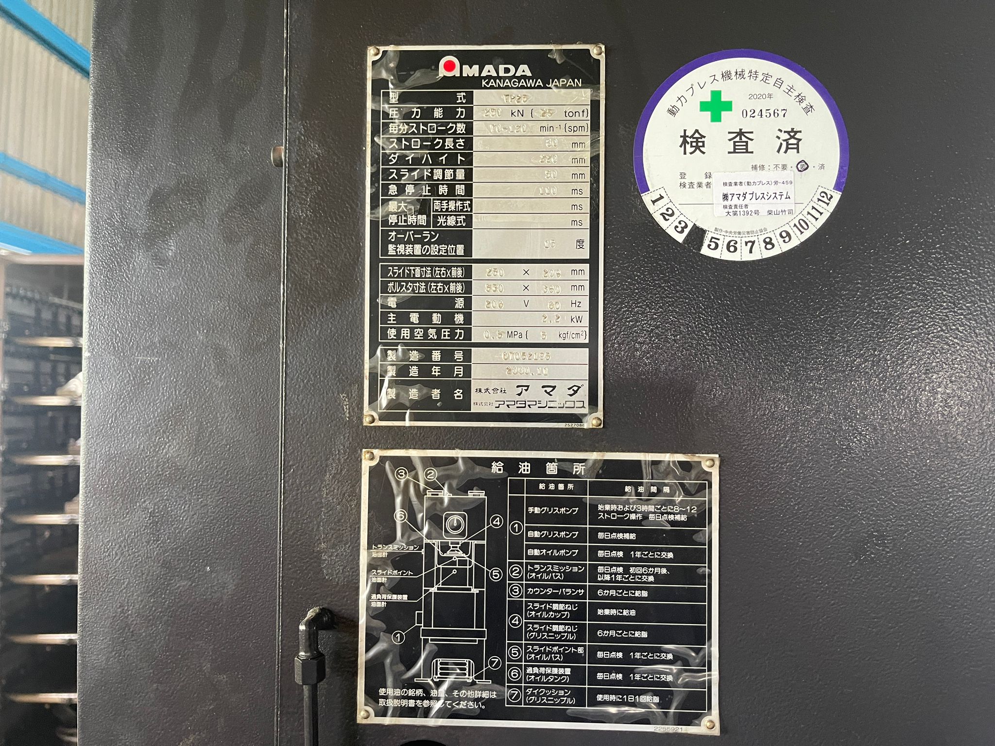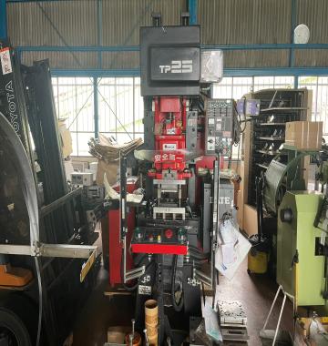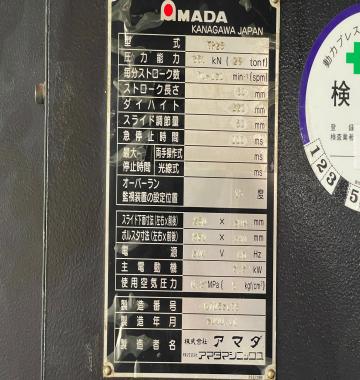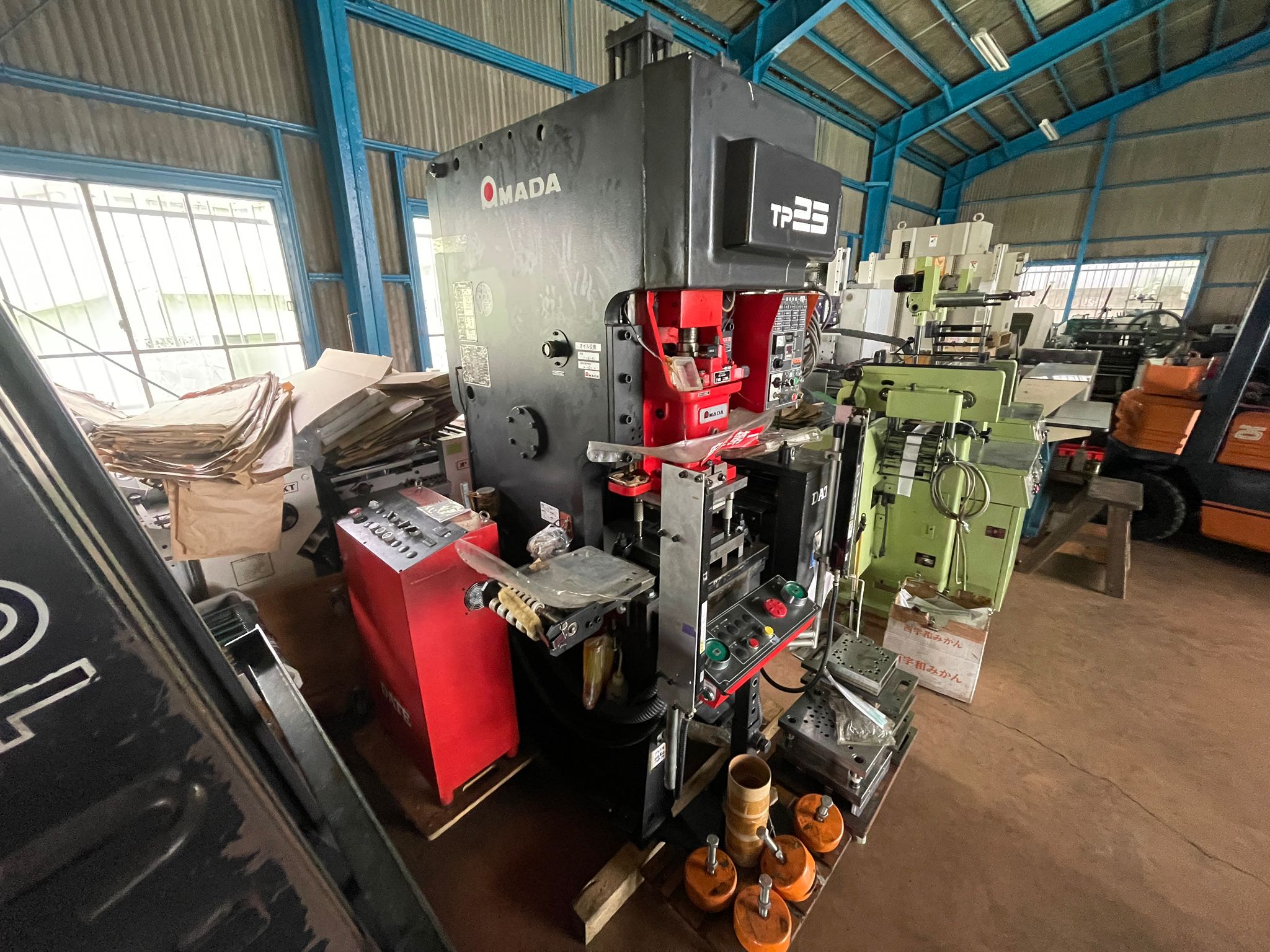 We are pleased to offer a high-quality used AMADA TP-25 Crank Press, manufactured in October 2000. This machine is a prime example of Japanese engineering, known for its durability, precision, and reliability. As a 25-ton press, it is perfectly suited for a variety of stamping, blanking, and forming operations.