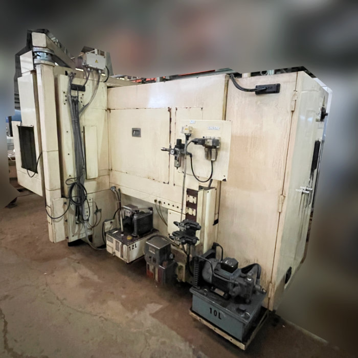This is a used machine sourced directly from a Japanese facility. As is expected with equipment of this age, it shows cosmetic signs of use, including scratches, some rust, and areas of peeling paint.