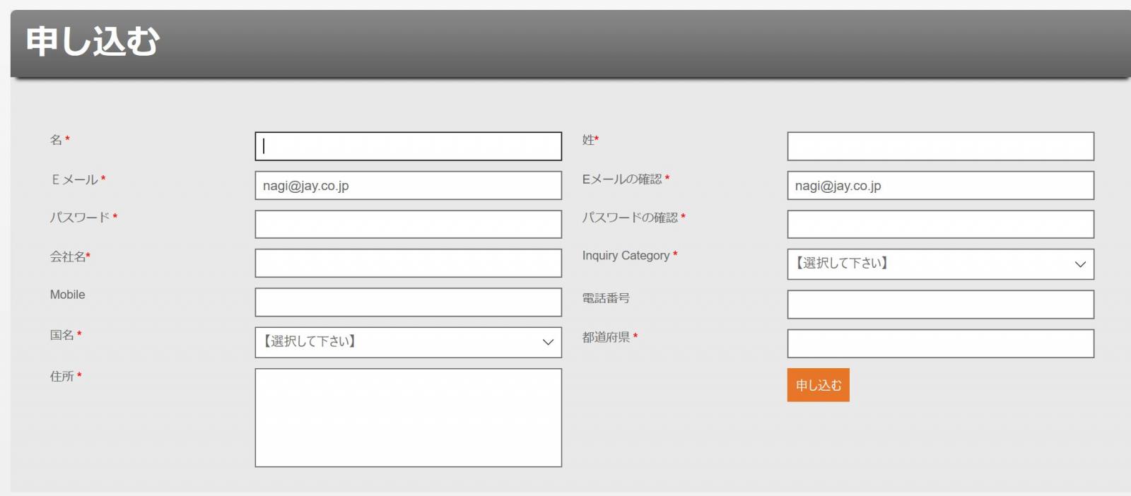 ジェイエンタープライズのウェブサイトへアカウントの登録お願い致します。